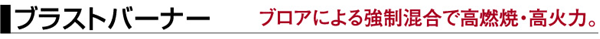 ブロアー(送風機)を用いてバーナヘッド手前の混合管でガスと空気を強制的に混合させ高燃焼させるガスバーナー。