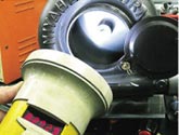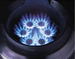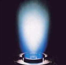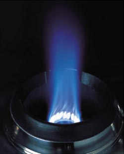 ブロアー(送風機)によって、高燃焼した炎を旋回させ、長く青い火炎が特徴のバーナーです。