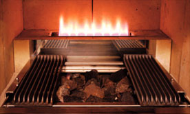 また、奥火には、ディスプレイ効果を高めると共に、炉内の温度を高温に保ち、壁面に使用しているレンガとの相乗効果で、素材の持ち味を最大限に引出します。 |